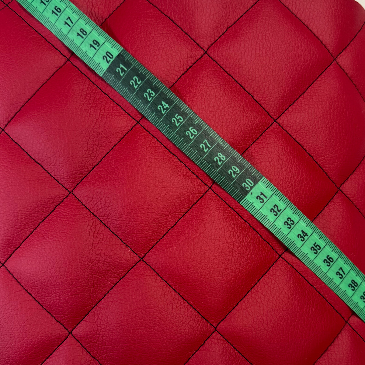 Description Simili cuir matelassé POINTU 5x5 cm, 540 g/m², largeur 145 cm, rouge avec fil noir