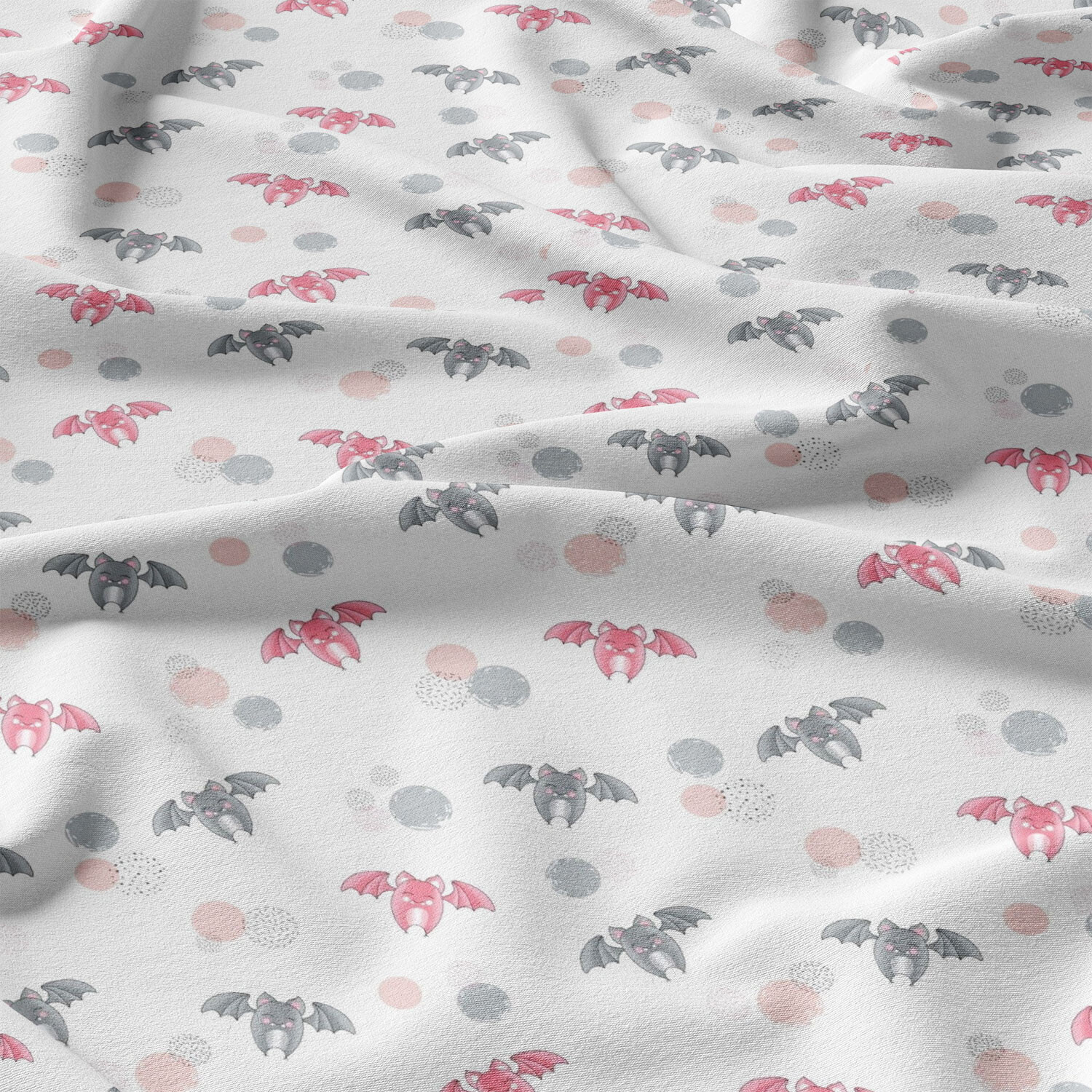 Tissu coton au métre imprimé Chauve souris couleur blanche