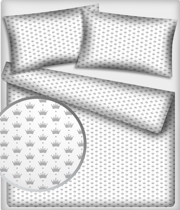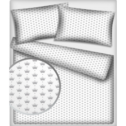Description Tissu coton au mètre, 125 g/m², largeur 160 cm, imprimé Couronnes gris et blanche