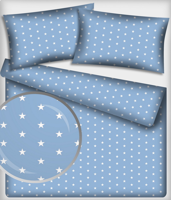 Description Tissu coton au mètre, 125 g/m², largeur 160 cm, imprimé Etoiles bleu