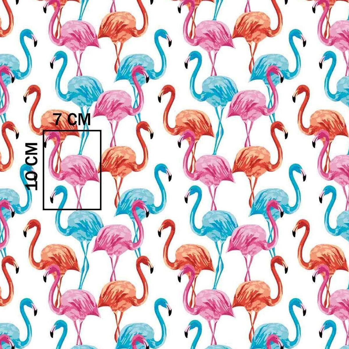 Description Tissu coton au métre imprimé Flamants roses couleur blanche