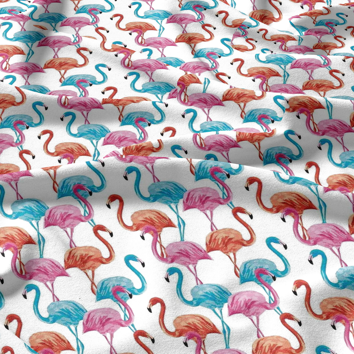 Tissu coton au métre imprimé Flamants roses couleur blanche