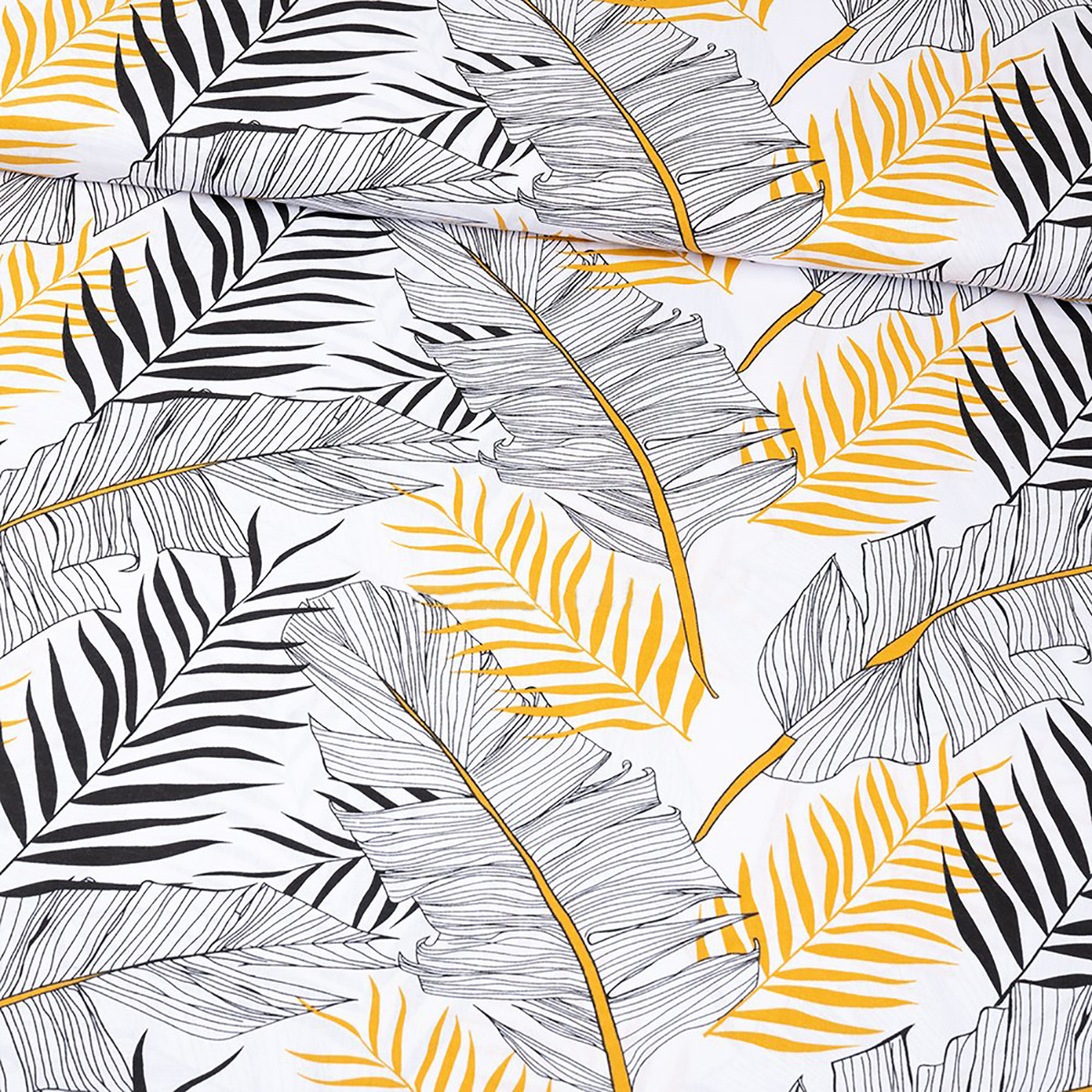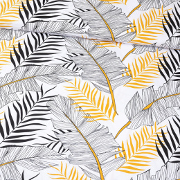 Description Tissu en coton au mètre, 125 g/m², largeur 160 cm, imprimé à feuilles sur fond blanc