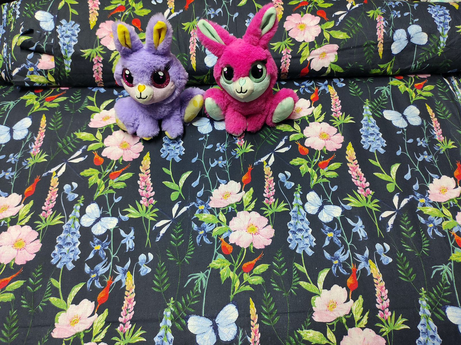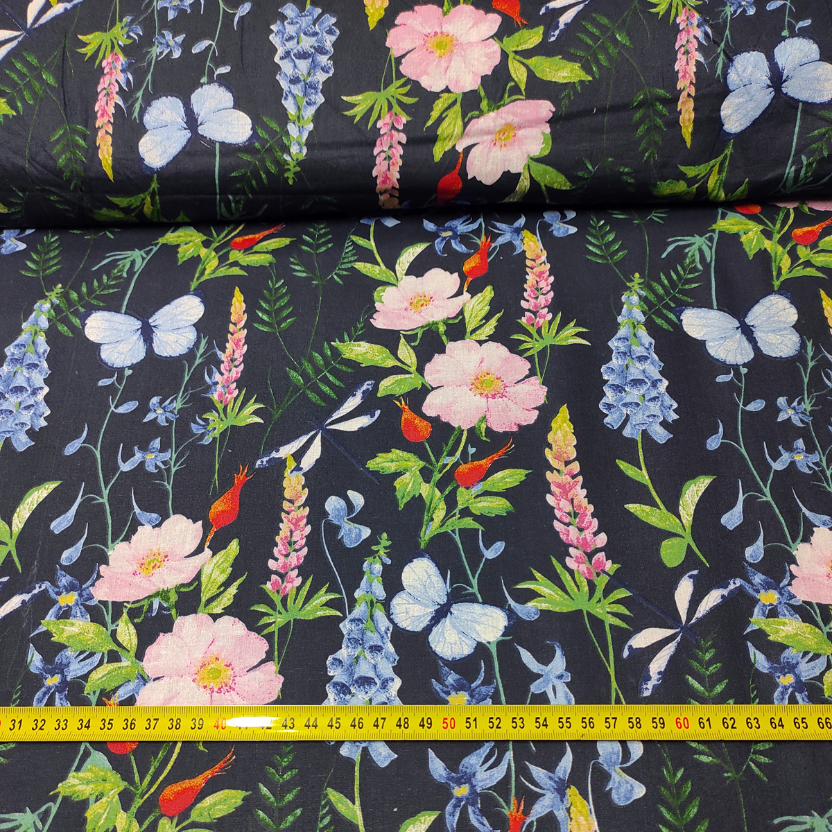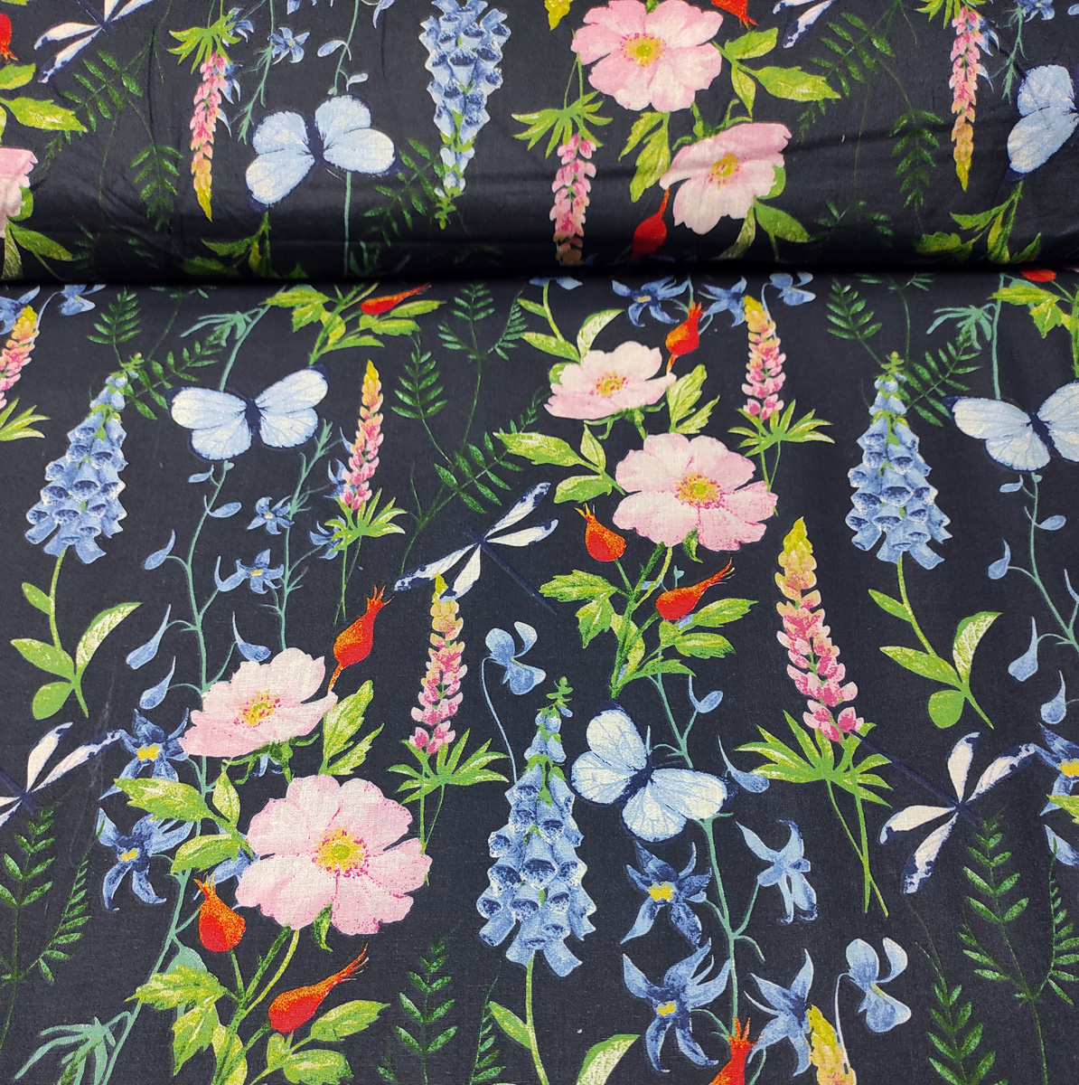 Description Tissu en coton au mètre, 125 g/m², largeur 160 cm, imprimé à fleurs champ