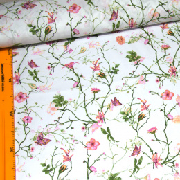 Description Tissu en coton au mètre, 125 g/m², largeur 160 cm, imprimé à fleurs champ sur fond blanc
