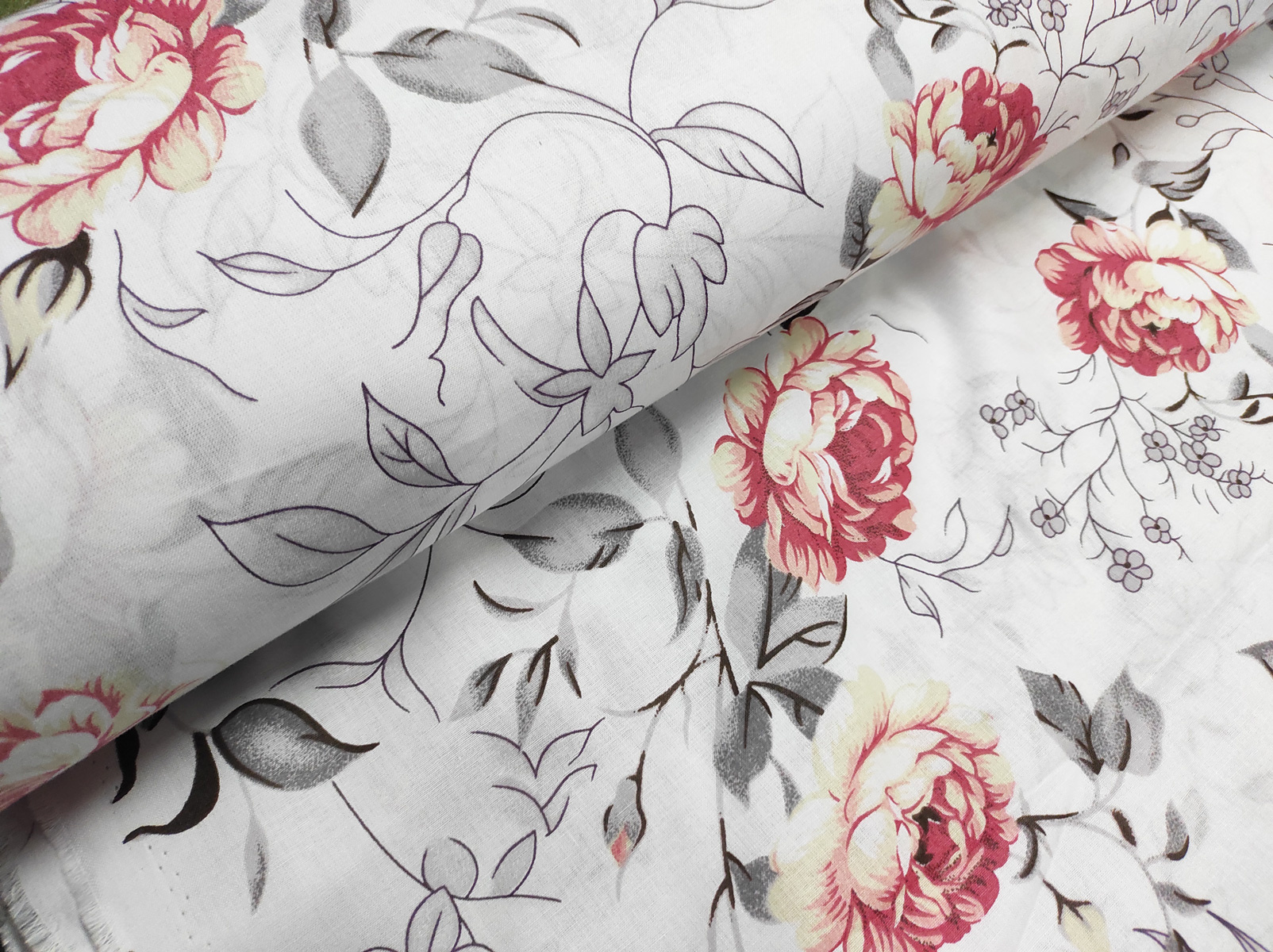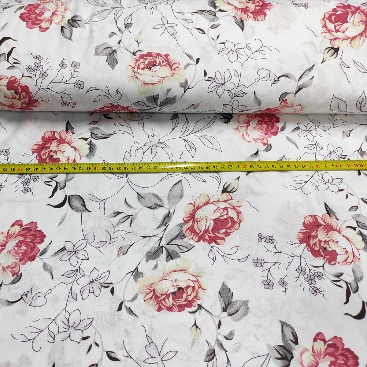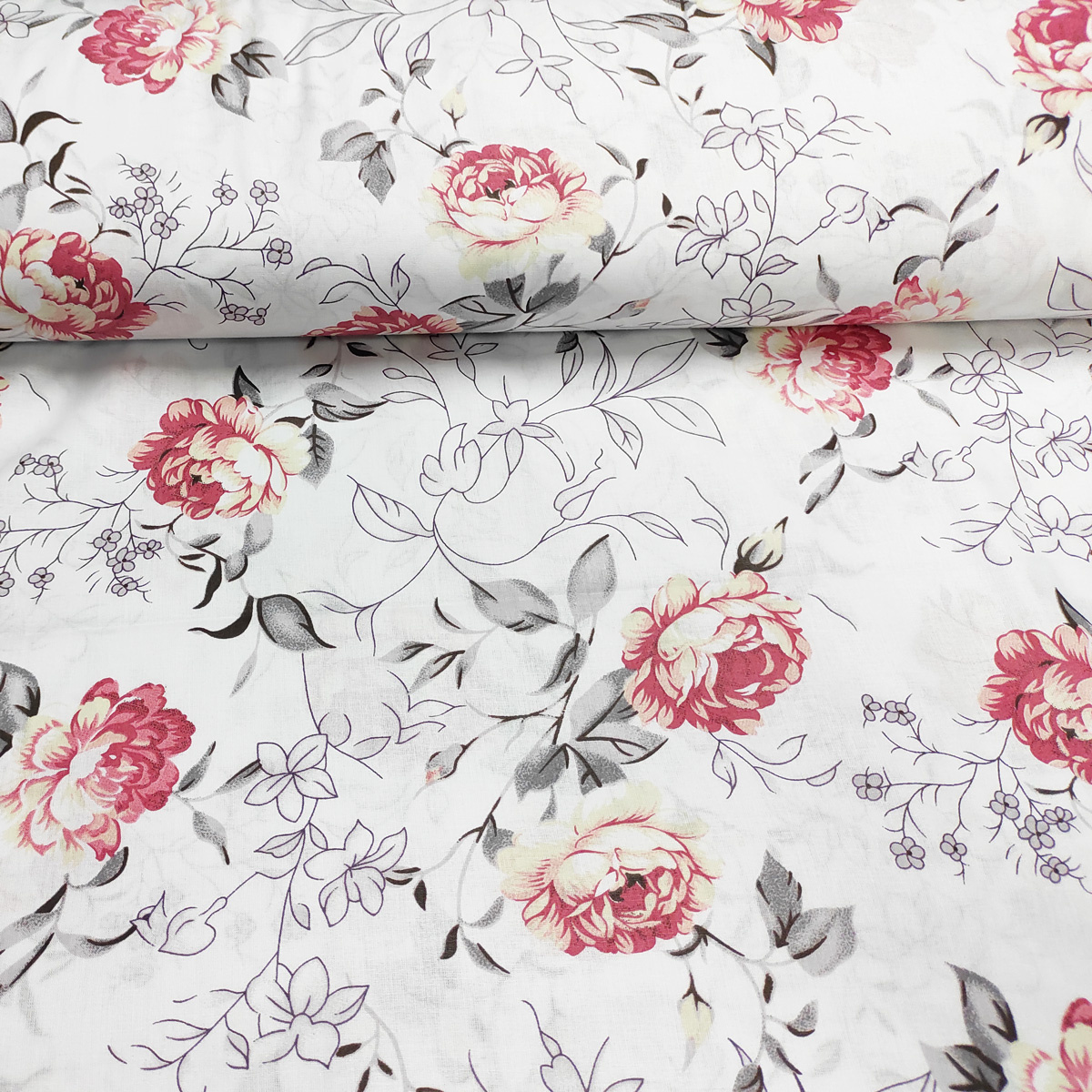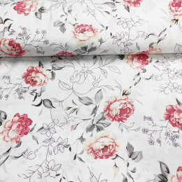Description Tissu en coton au mètre, 125 g/m², largeur 160 cm, imprimé à fleurs sur fond blanc