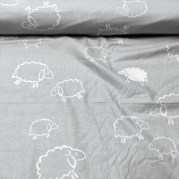 Tissu coton au métre imprimé Moutons blanche couleur gris