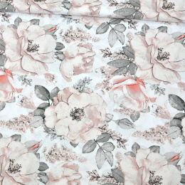 Description Tissu en coton au mètre, 125 g/m², largeur 160 cm, imprimé à pivoine sur fond blanc