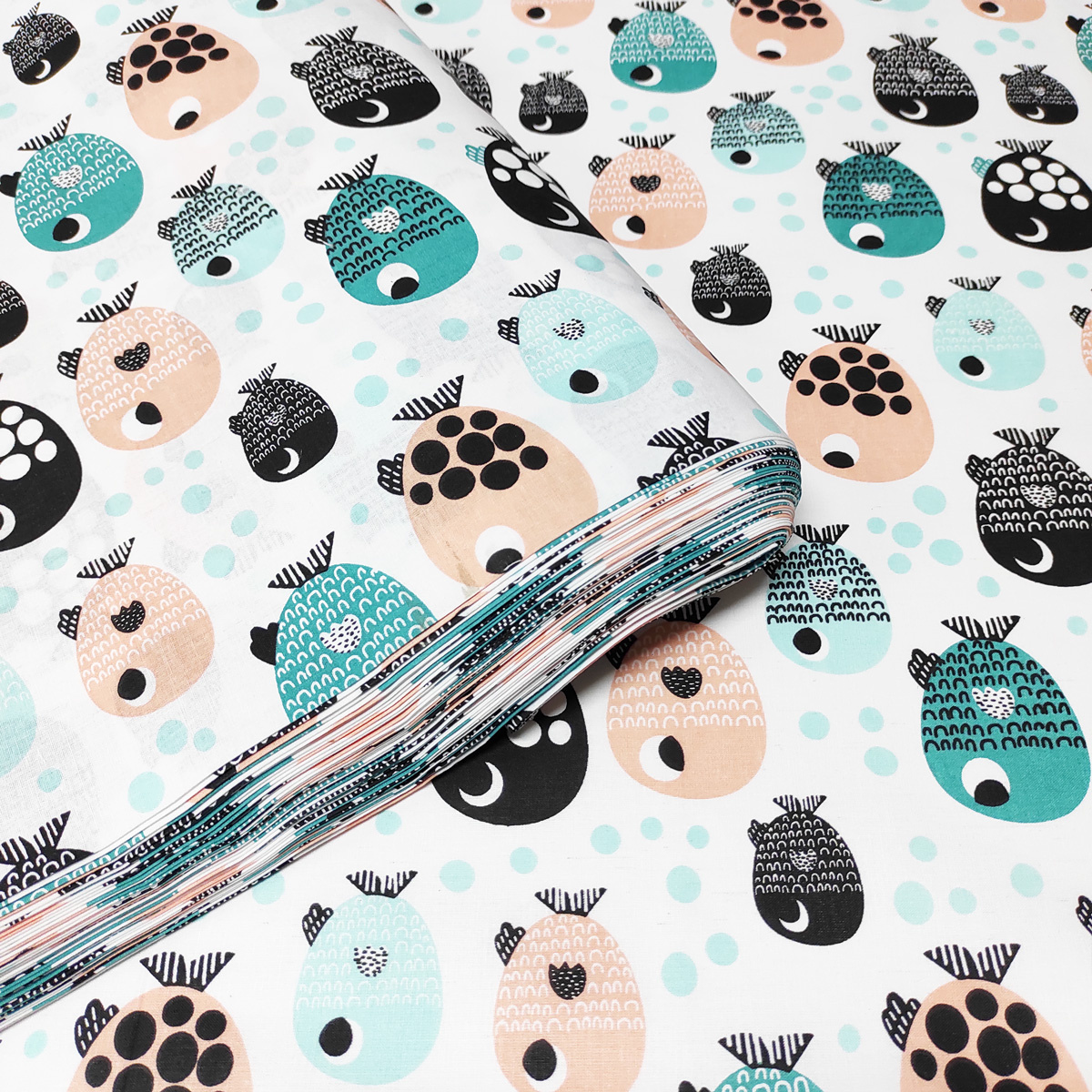Tissu coton au métre imprimé Poissons sur blanc