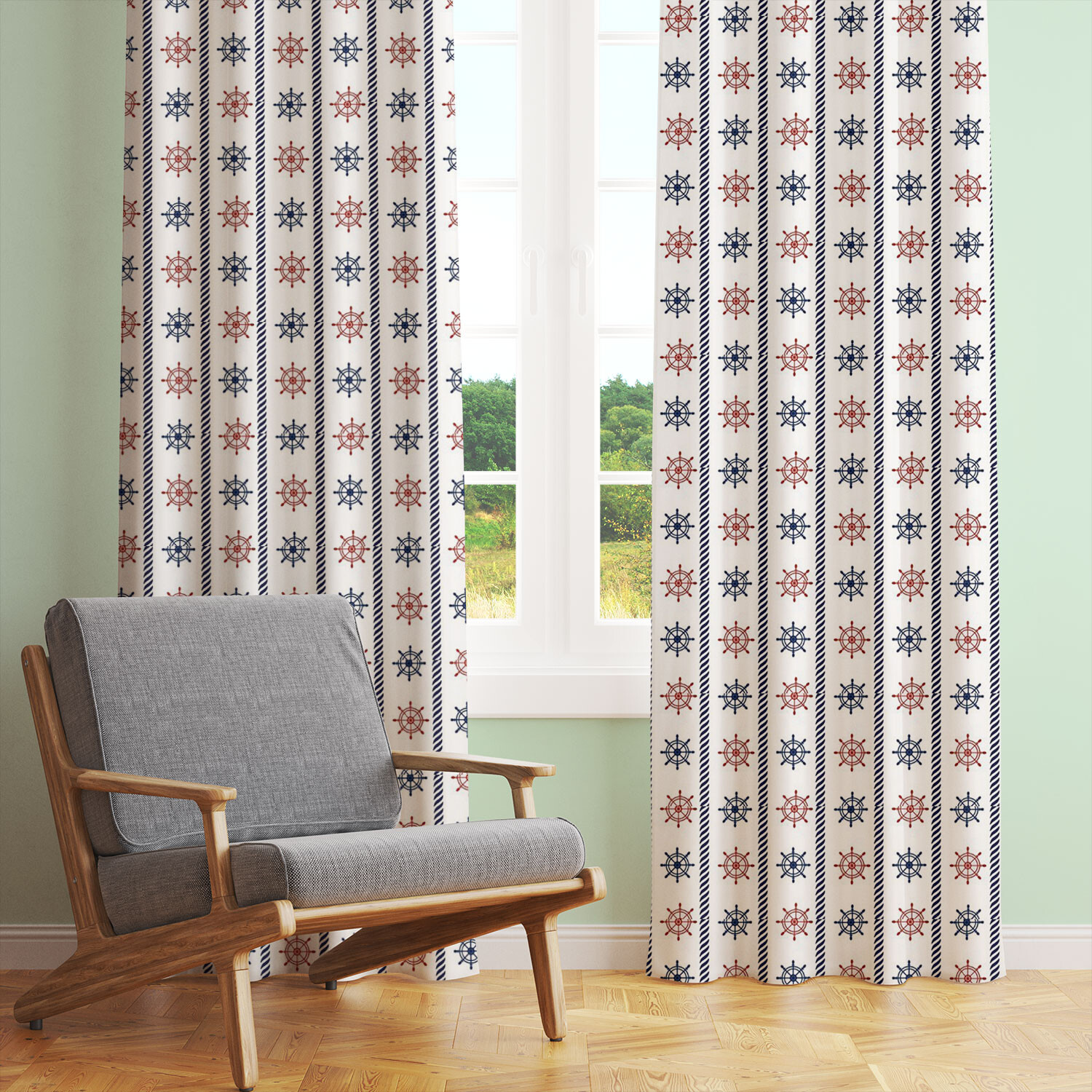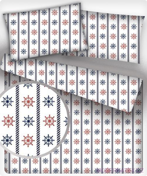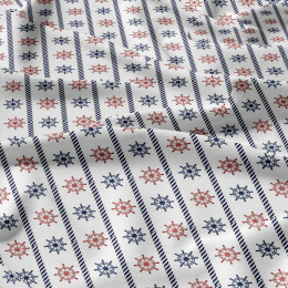 Tissu coton au métre imprimé Volants bleu et rouge sur blanche