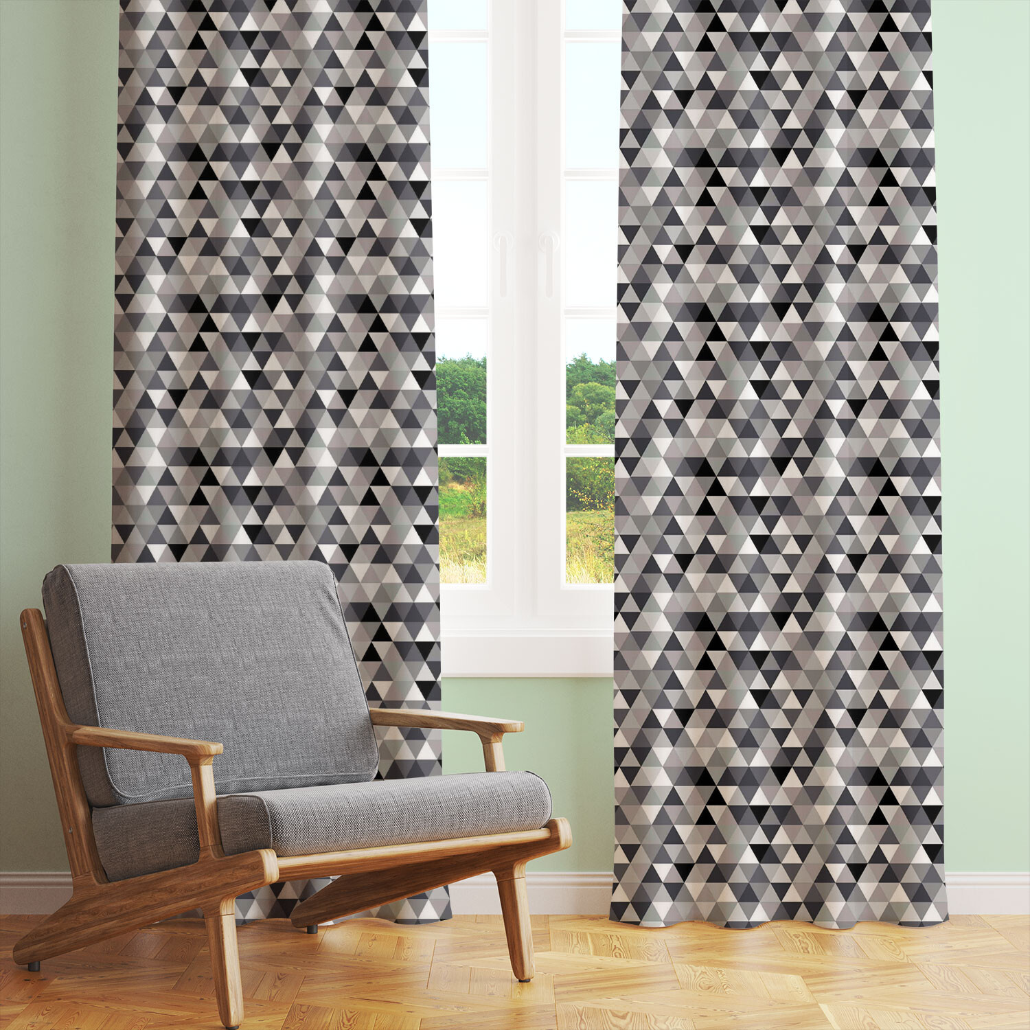 Description Tissu en coton uni au mètre, 125 g/m², largeur 160 cm, Triangulair noir 2cm