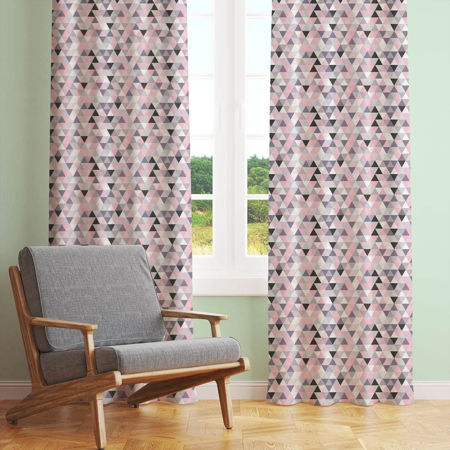 Tissu en coton uni au mètre, 125 g/m², largeur 160 cm, Triangulair rose 2cm