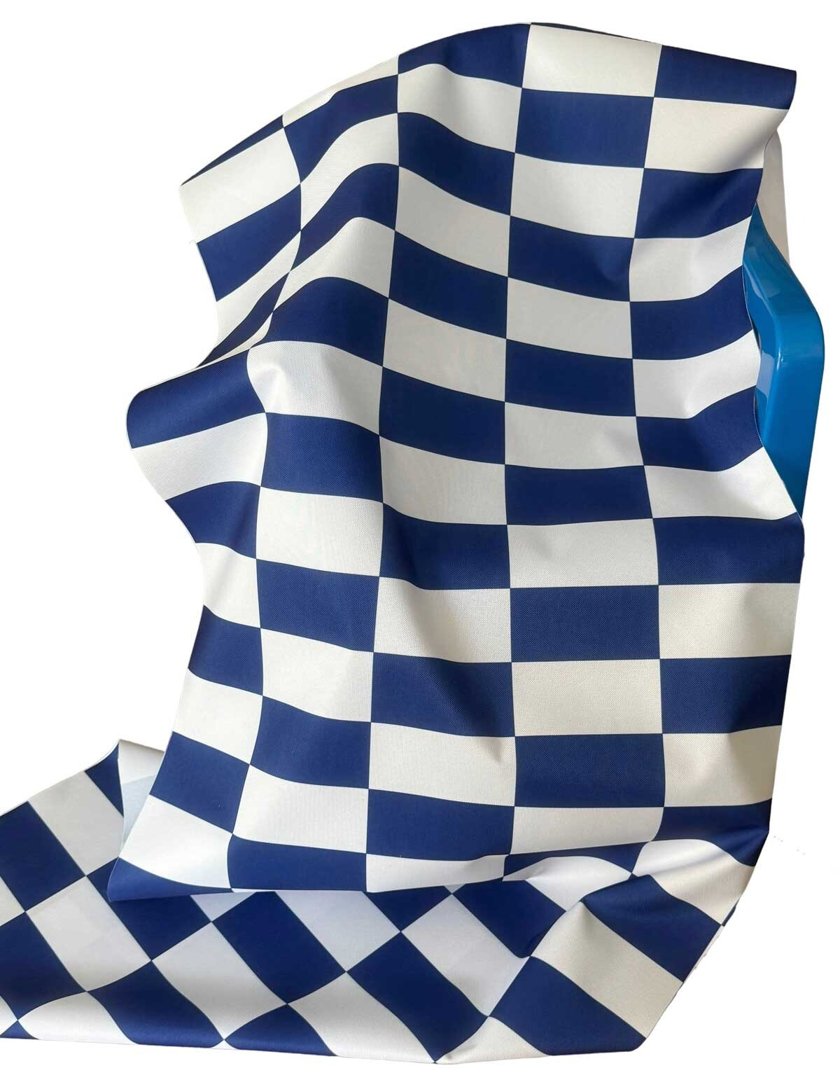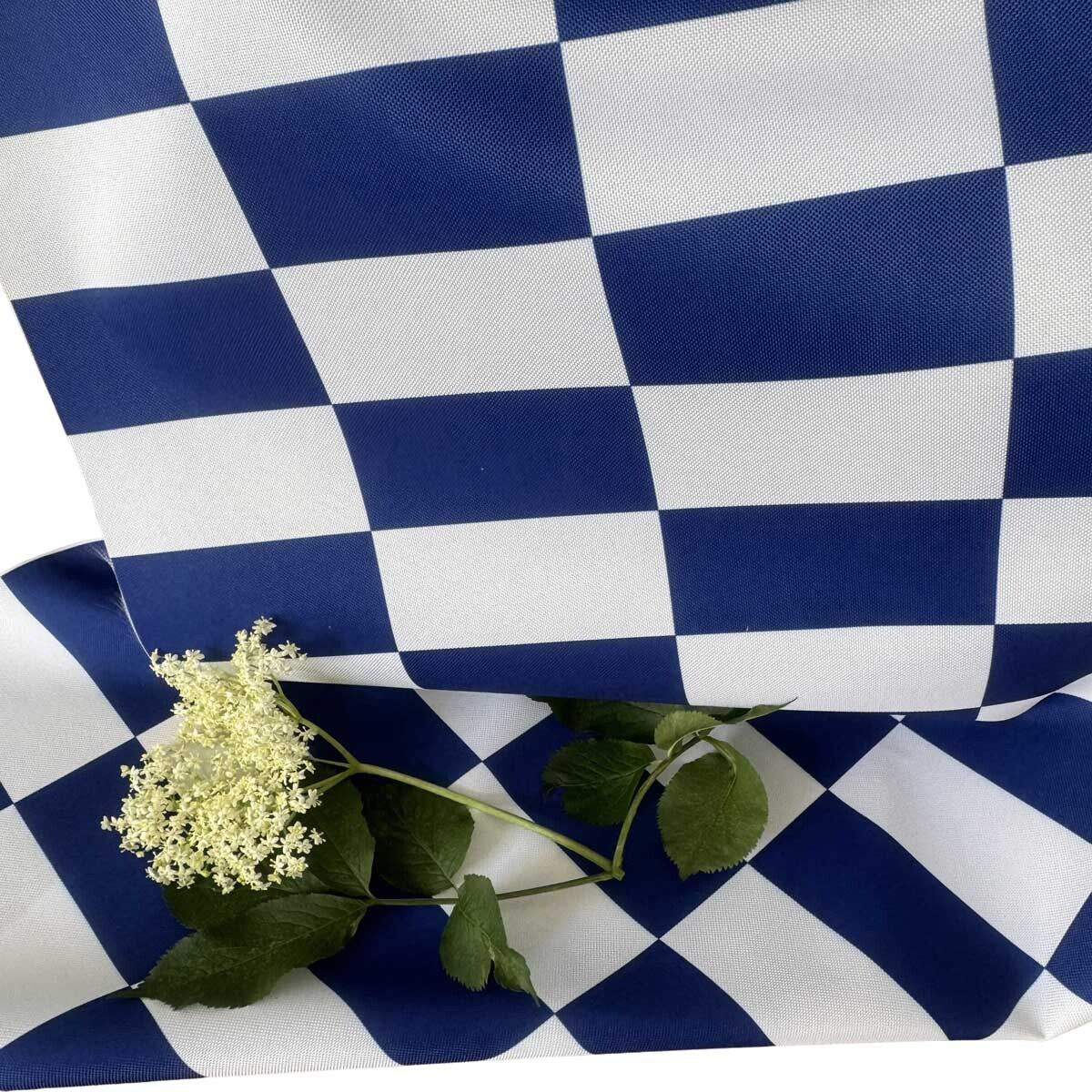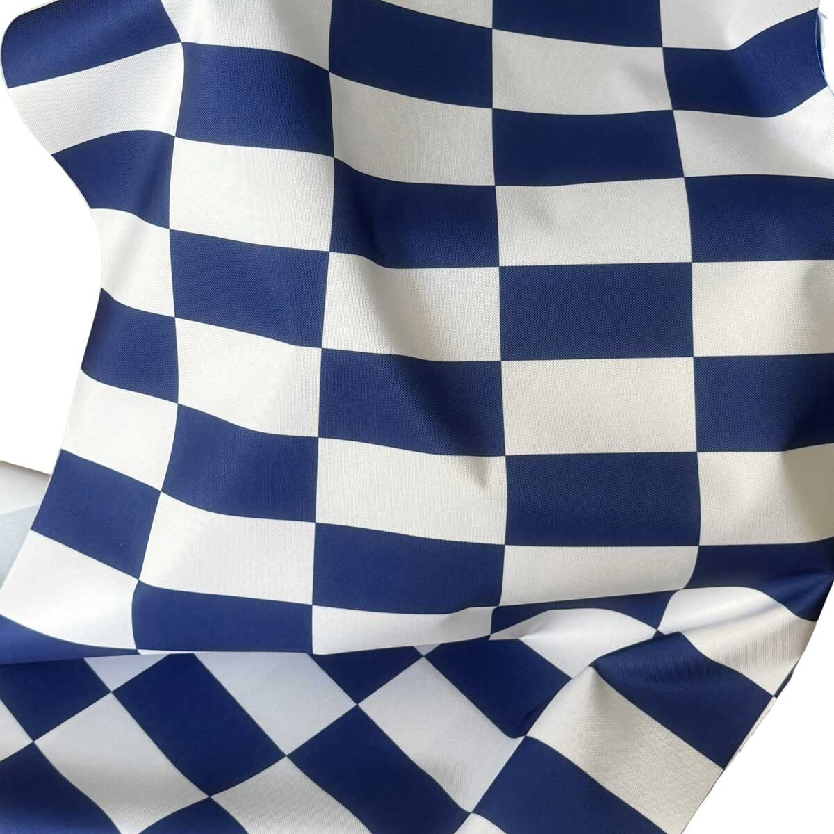 Tissu d'extérieur, déperlant pour transats et hamacs de jardin, Blanc Bleu Damier 5x10 cm