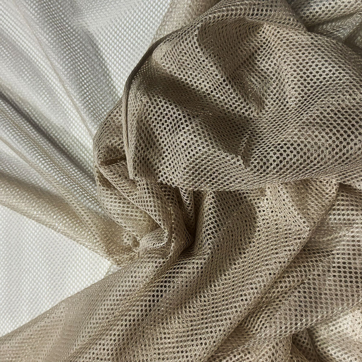 Tissu filet mesh beige au mètre, maille fine 2 × 2 mm, 60 g/m², largeur 150 cm