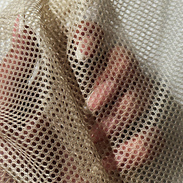Description Tissu filet mesh beige au mètre, maille fine 2 × 2 mm, 60 g/m², largeur 150 cm