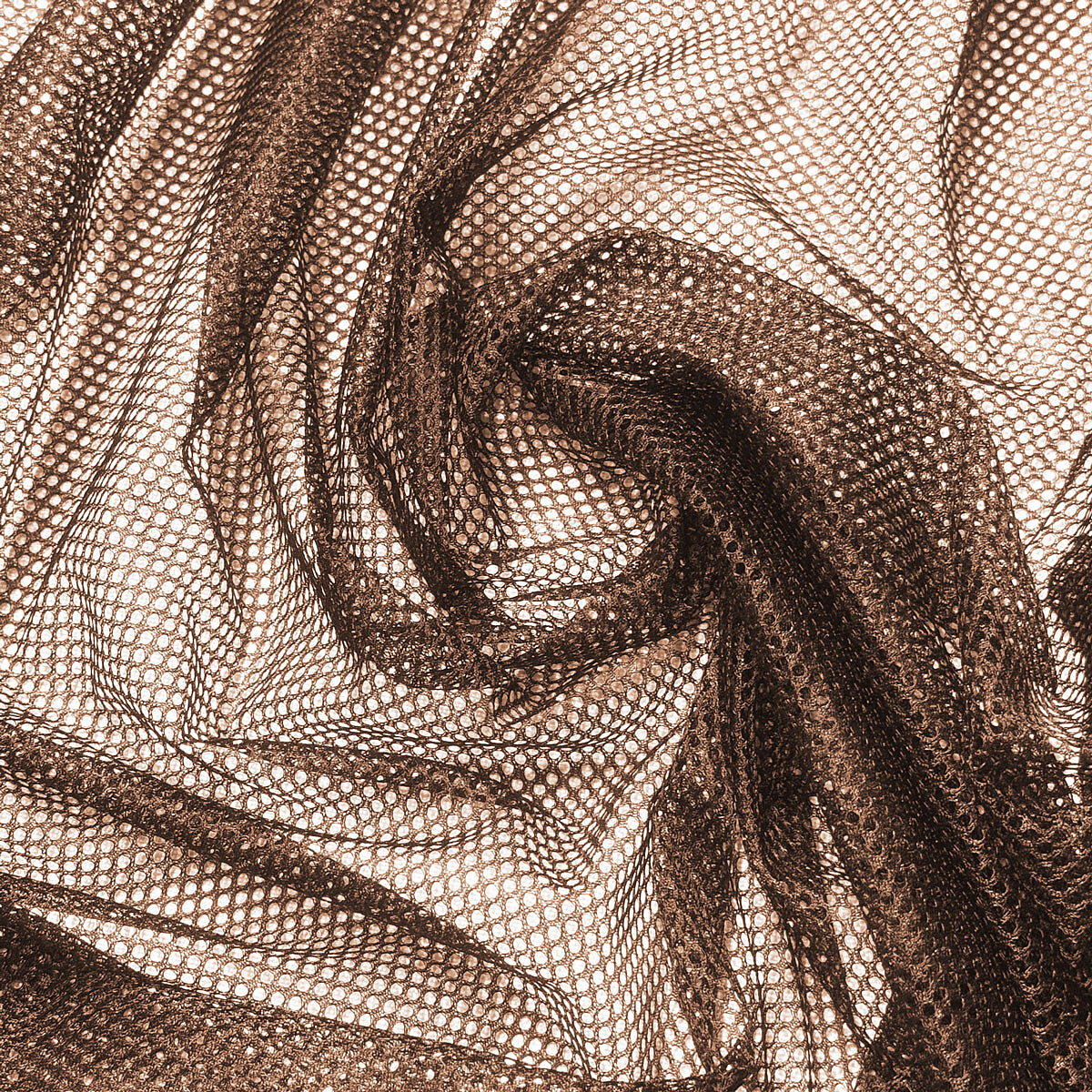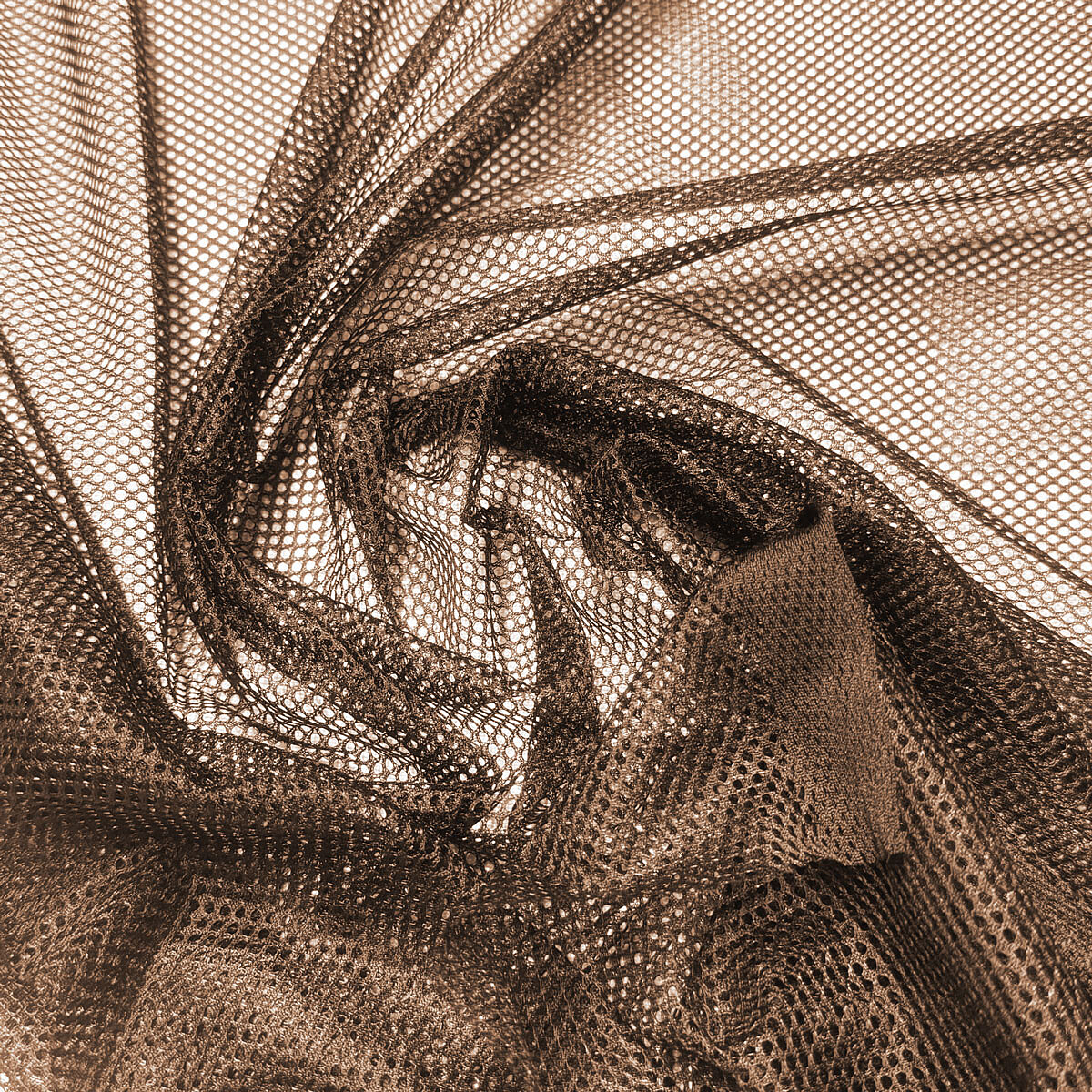 Tissu filet mesh marron au mètre, maille fine 2 × 2 mm, 60 g/m², largeur 150 cm