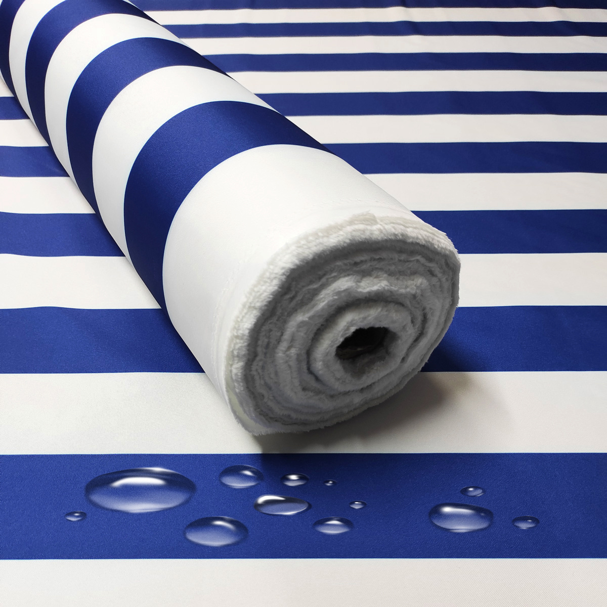 Description Tissu imperméable PREMIUM à rayures bleues et blanches, polyester PU, 190 g/m², largeur 160 cm