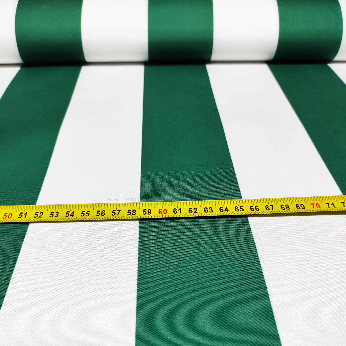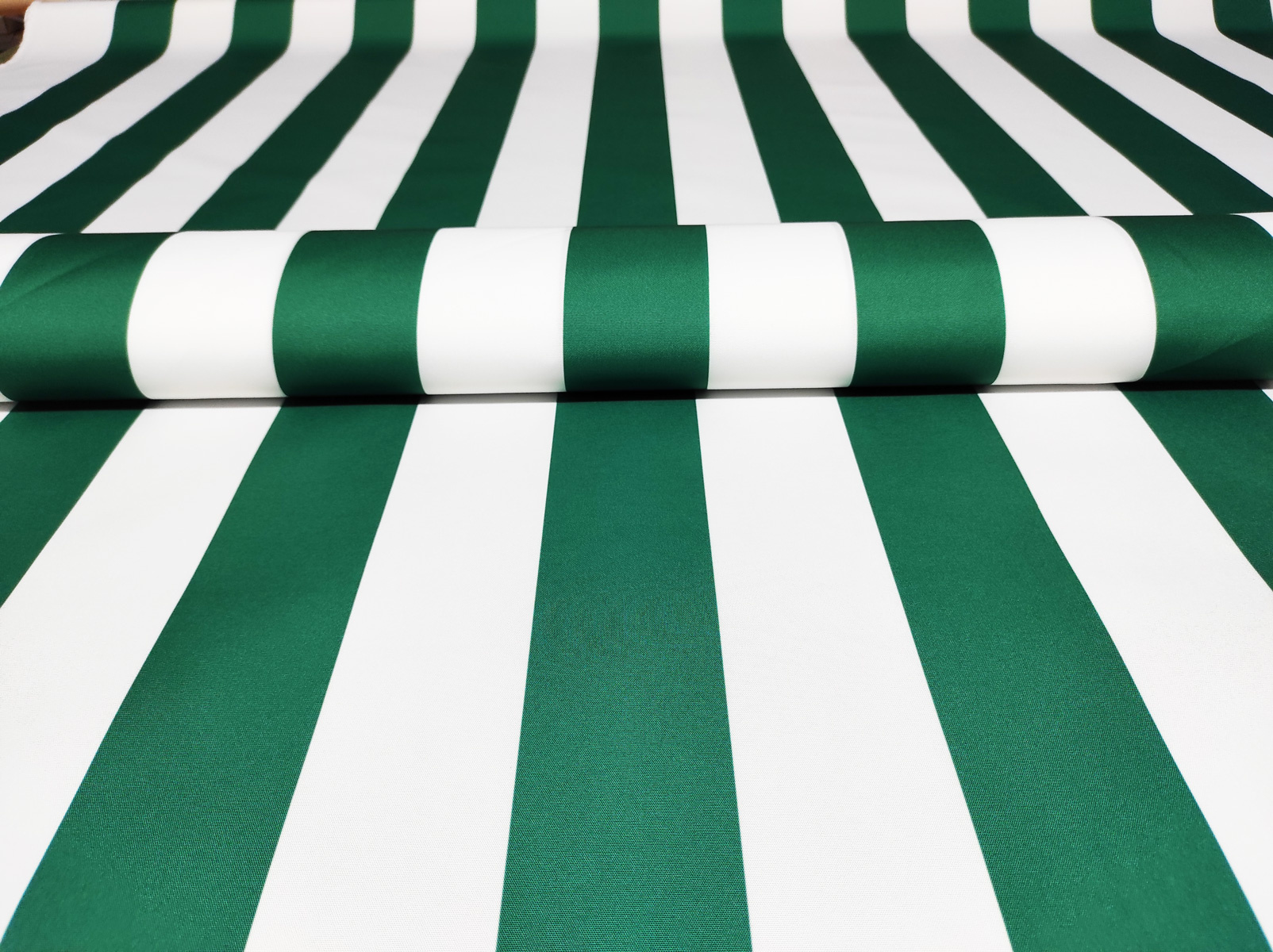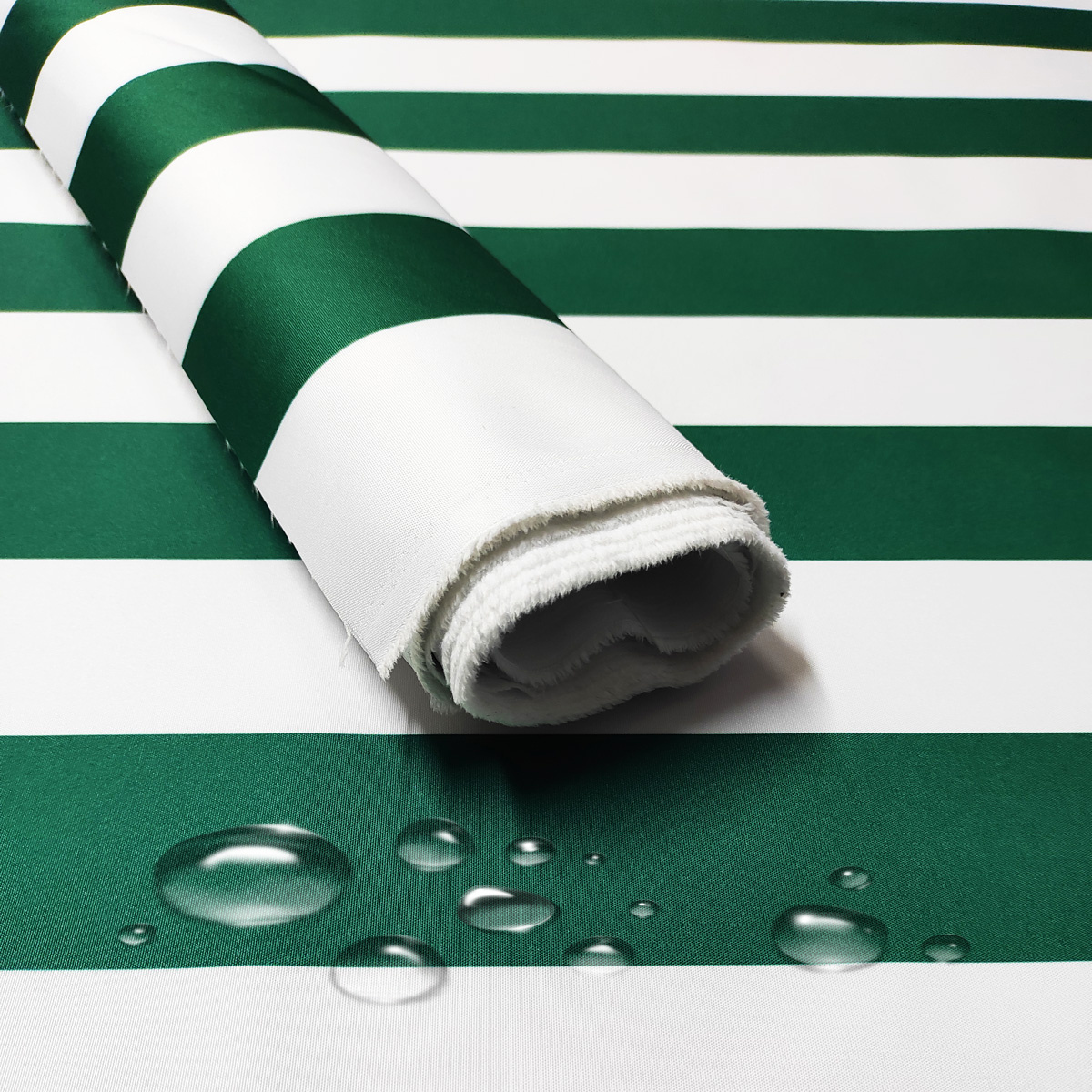 Description Tissu imperméable PREMIUM à rayures vertes et blanches, polyester PU, 190 g/m², largeur 160 cm